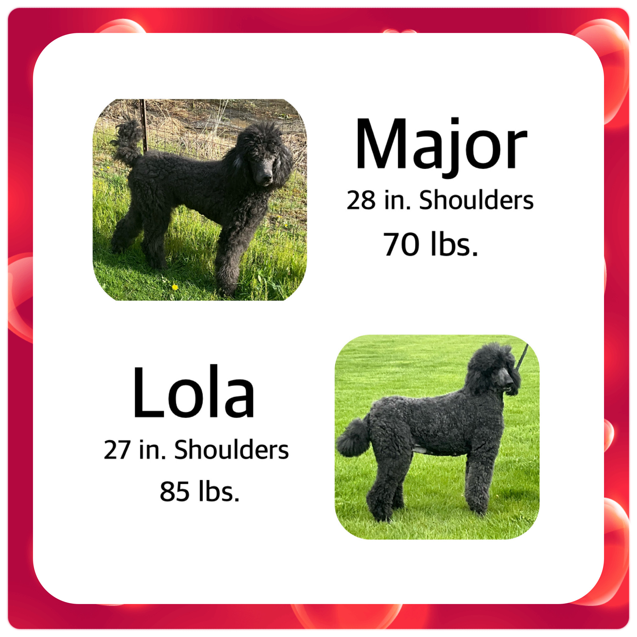 - 2 Tuxedo Royal Standard Poodles – 1 male and 1 female