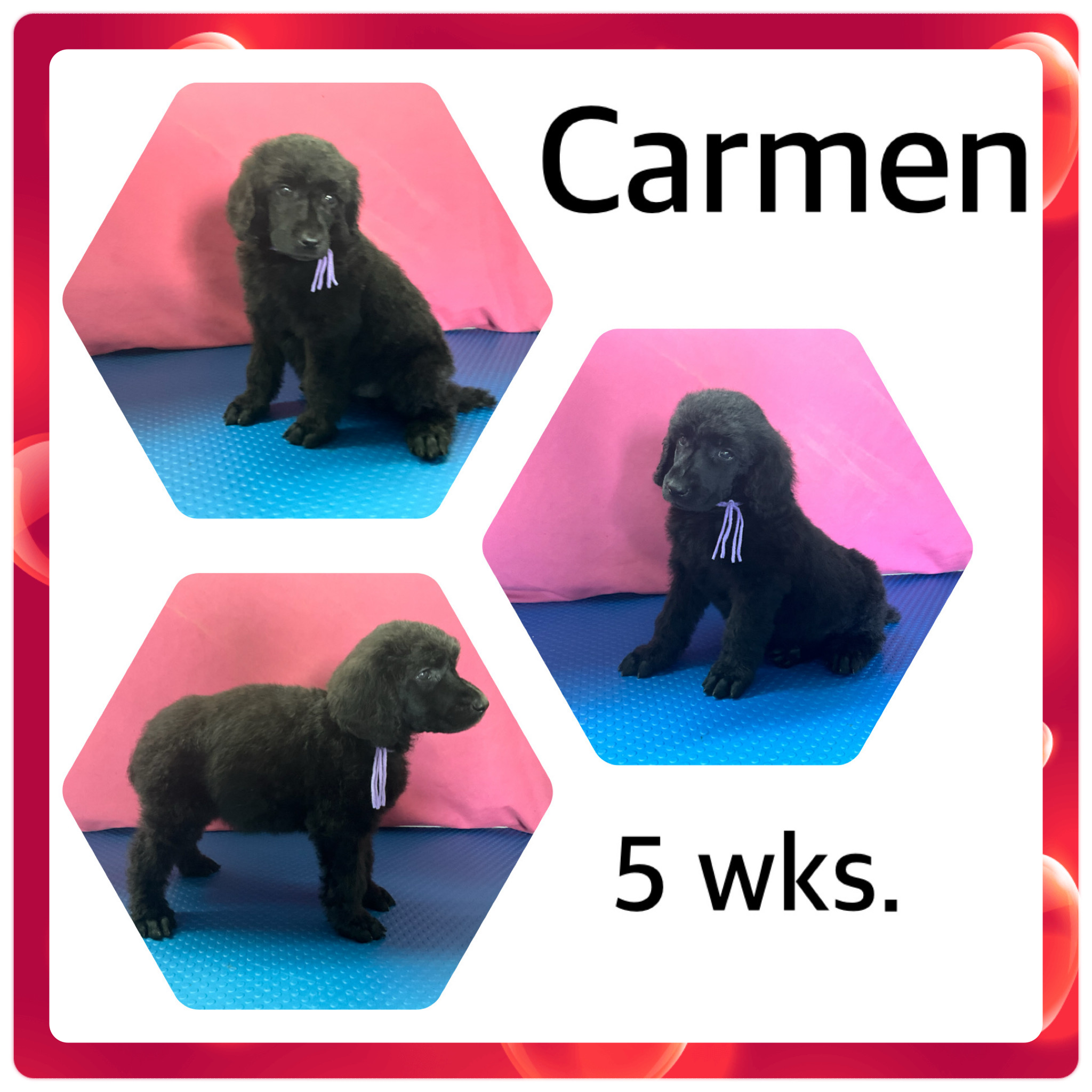 Update Carmen: 8/12/25. Carmen Puppy wellness checkup went well she is a healthy puppy and has had no accidents at all since we arrived home. She is sleeping all night. Carmen is adjusting well to her new home and k-9 sister.