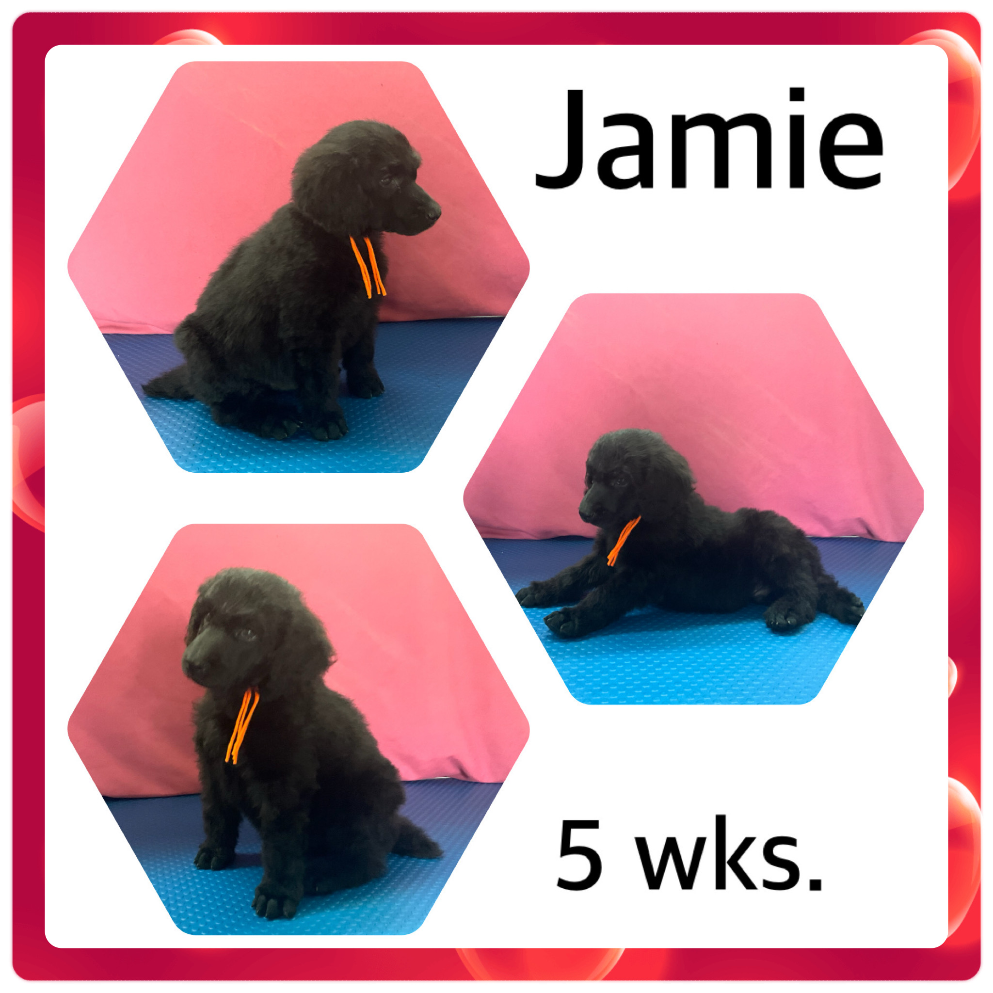 We’d like to introduce you to Jamie, our sweet 5-week-old male Royal Standard Poodle puppy, who is now available for his forever home.