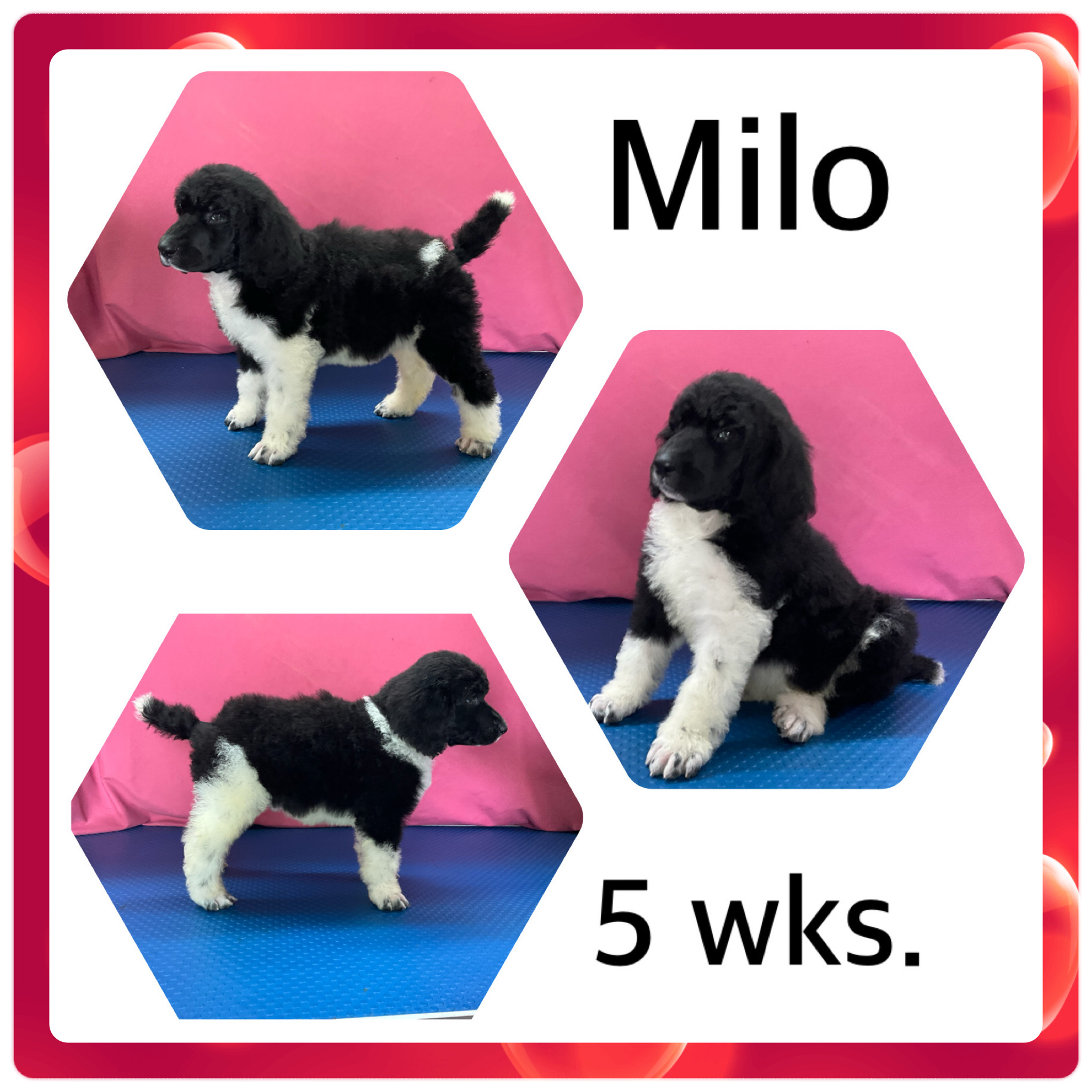 We are expecting puppies to arrive in early June 2025. With this pairing, we may see a beautiful variety of coat colors including black, dark navy blue, silver, white, and possibly some parti poodles as well. If the puppies arrive around June 4th, they will be ready to go to their forever homes in early August 2025.
