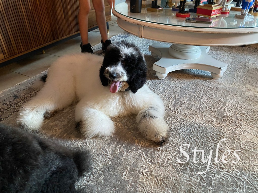 I hope you are recovering well. We made it home Styles did amazing !!! He is now kenneled trained and doing very well on potty training. He is signed up for obedient school at the end of Aug. He will be trained for a therapeutic dog for the practice as well . The Vet will see him on Monday for his first visit as they are limited in appt die to Covid . He does have a small ear infection the groomers mentioned because they did not want to pull hair out yet , they will do after Monday visit . We are soooo enjoying him he is the celebrity in the house !! Will keep you updated and let you know how his health exam goes .
