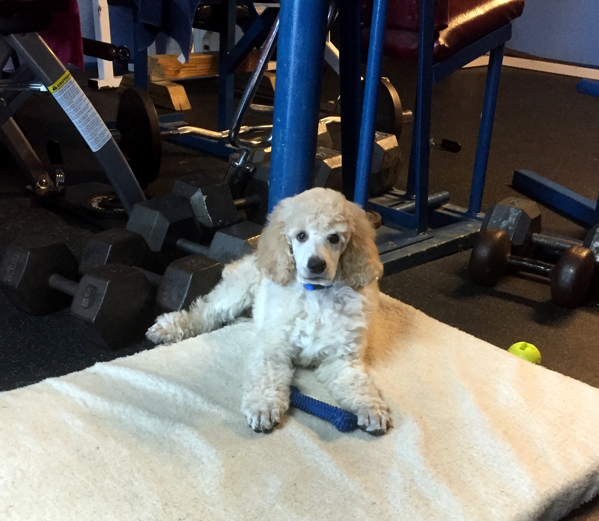 Blazer working out in the weight room.